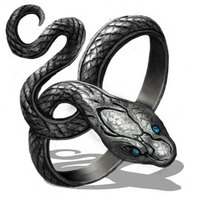 ꕥ Ring of the Fraternity of Shadows - A ring found in the realm created by the ring of two wish. Possessing power over darkness. Giving the wearer the ability to call it forth.Description: This ring is made in the shape of two intertwined asps clutching a black onyx in their mouth.Location: The Night Mother